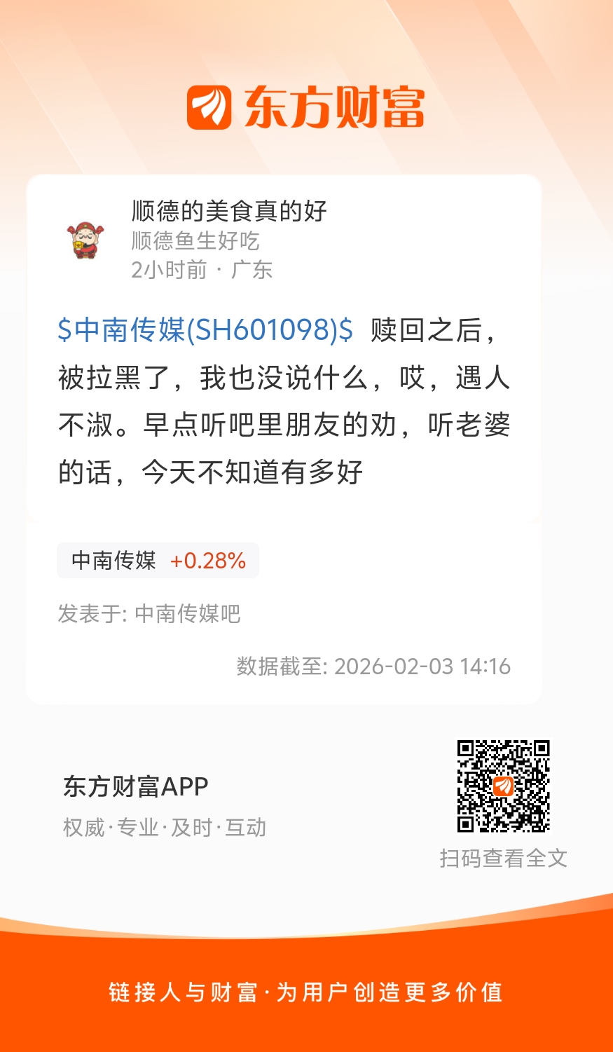 $中南传媒(SH601098)$ 赎回之后,被拉黑了,我也没说什么,哎,遇人不淑。早点听吧里朋友的劝,听老婆的话,今天不知道有多好