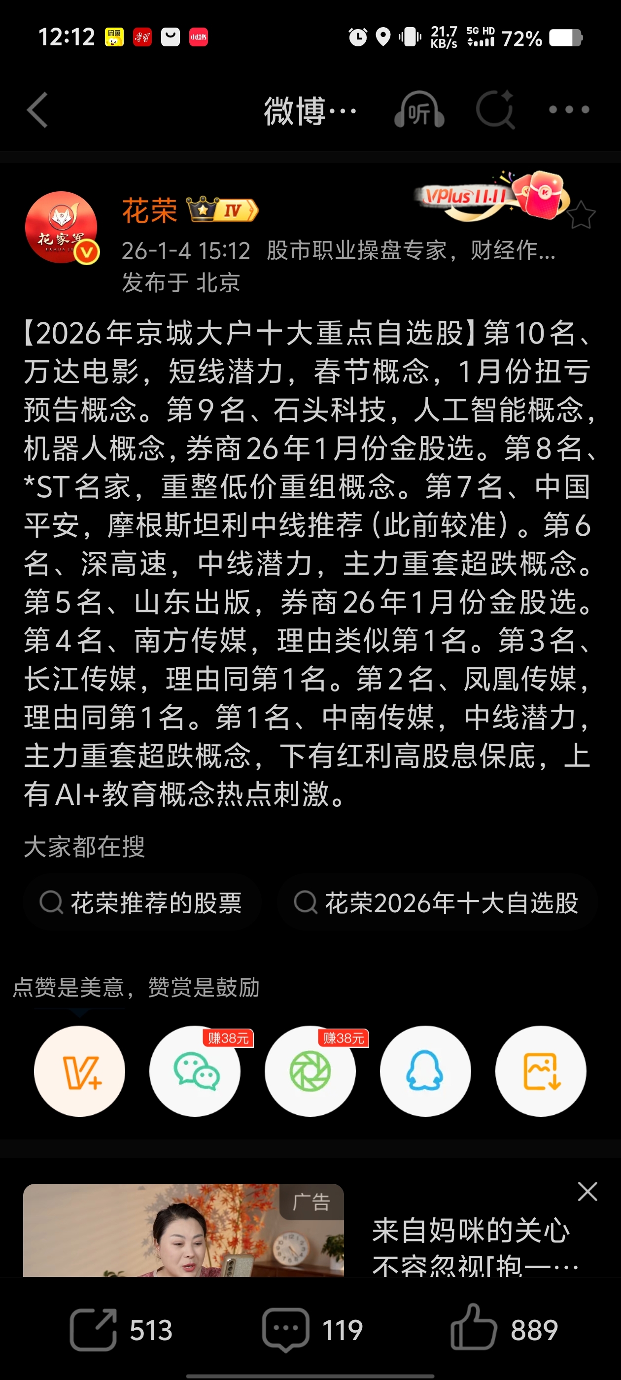 $中南传媒(SH601098)$ 10大金股第一位