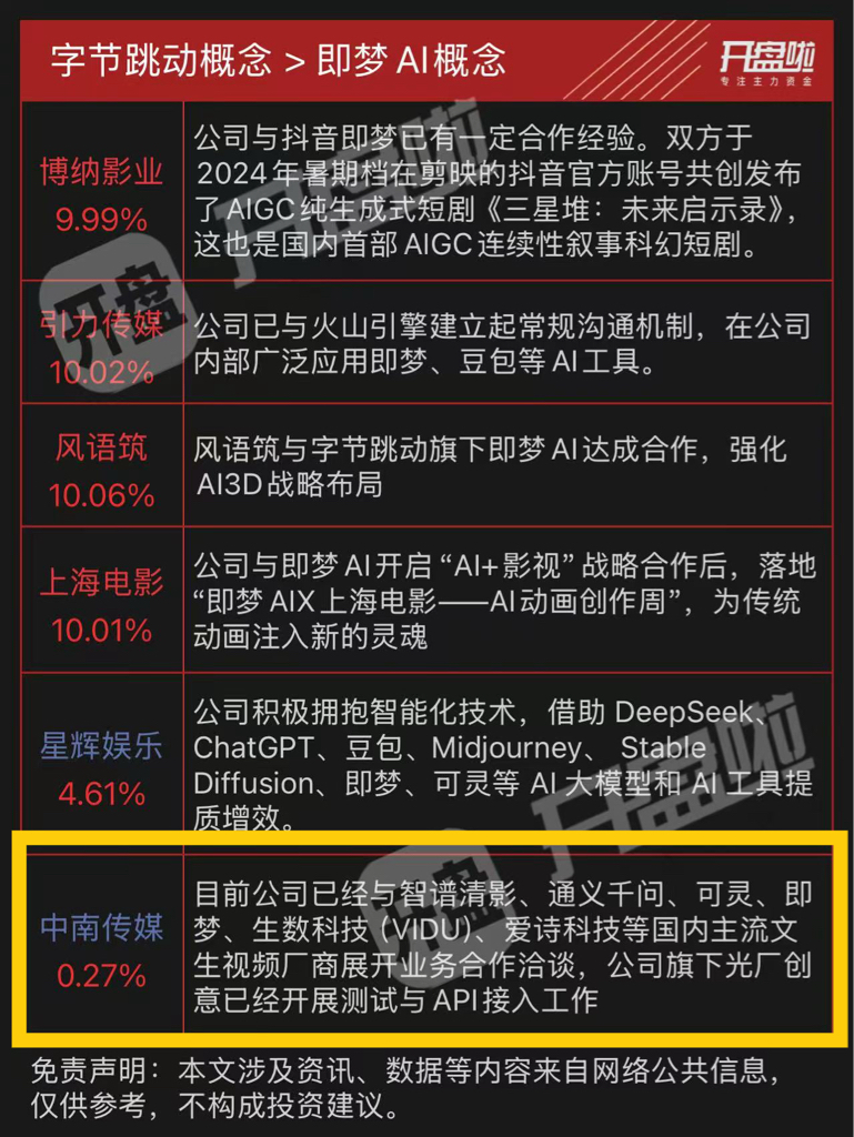 中南传媒:唯一还在低位的即梦,公司已经与即梦展开业务合作洽谈,公司旗下光厂创意已