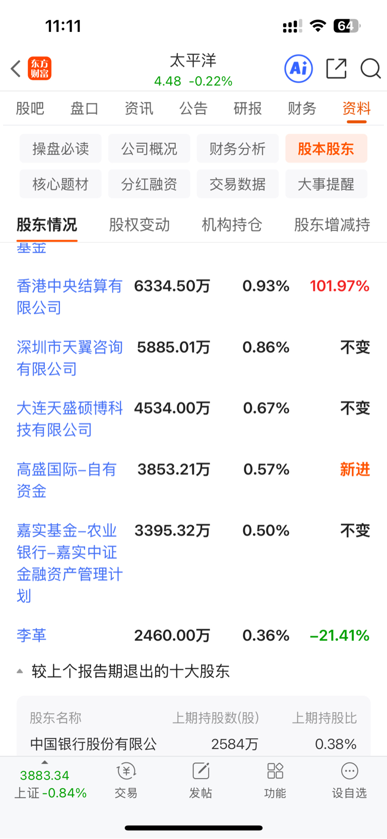 $太平洋(SH601099)$ 股东进出和我们小散有多大关系呢,跟上主力节奏才行