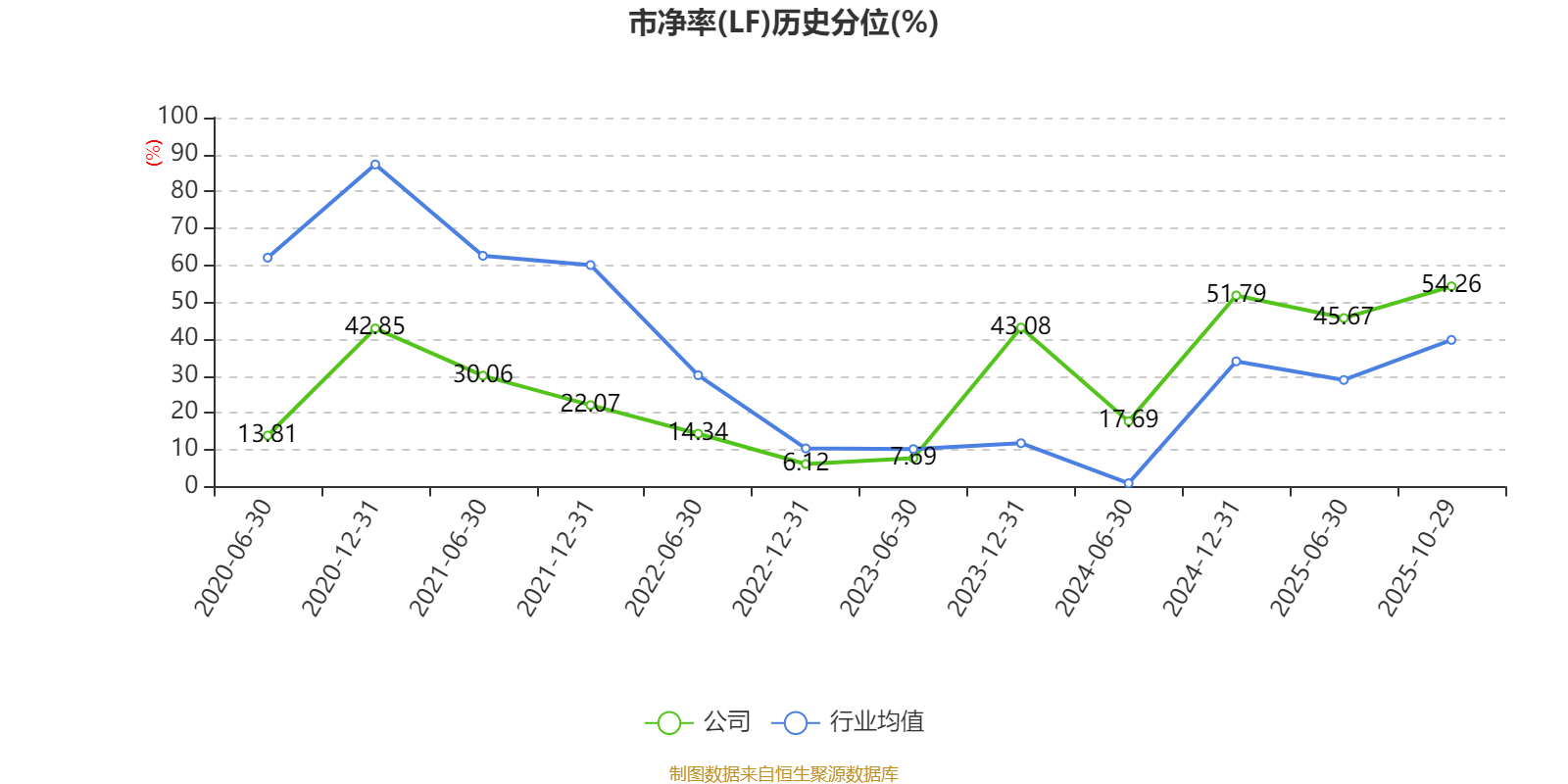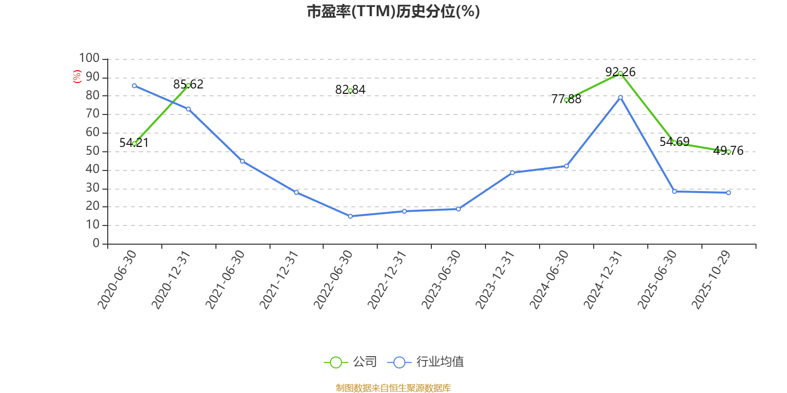 市盈率、市净率为负时,不显示当期分位数,会导致折线图中断。