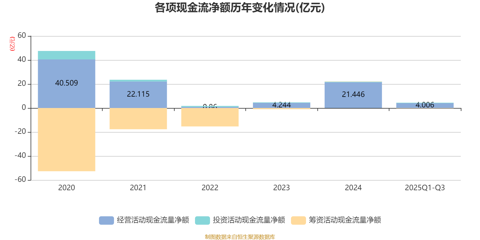 2025年前三季度,公司经营活动现金流净额为4.01亿元,同比下降70.41%;筹资活动现金流净额-2350.87万元,同比增加6108.83万元;投资活动现金流净额4109.82万元,上年同期为4665.85万元。