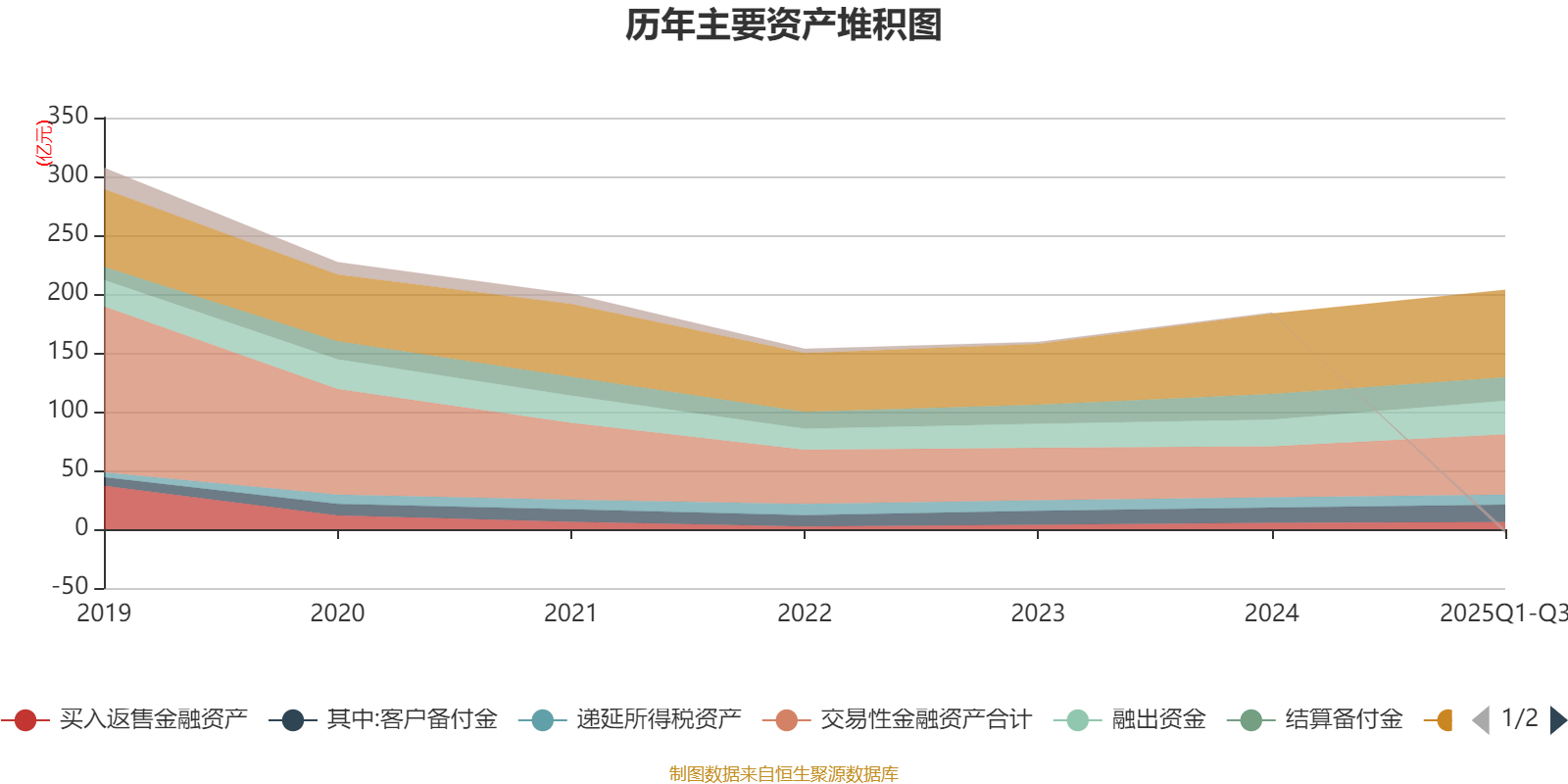 资产重大变化方面,截至2025年三季度末,公司交易性金融资产合计较上年末增加18.27%,占公司总资产比重上升2.1个百分点;融出资金较上年末增加25.15%,占公司总资产比重上升1.89个百分点;结算备付金较上年末减少8.31%,占公司总资产比重下降1.84个百分点;递延所得税资产较上年末减少2.47%,占公司总资产比重下降0.48个百分点。