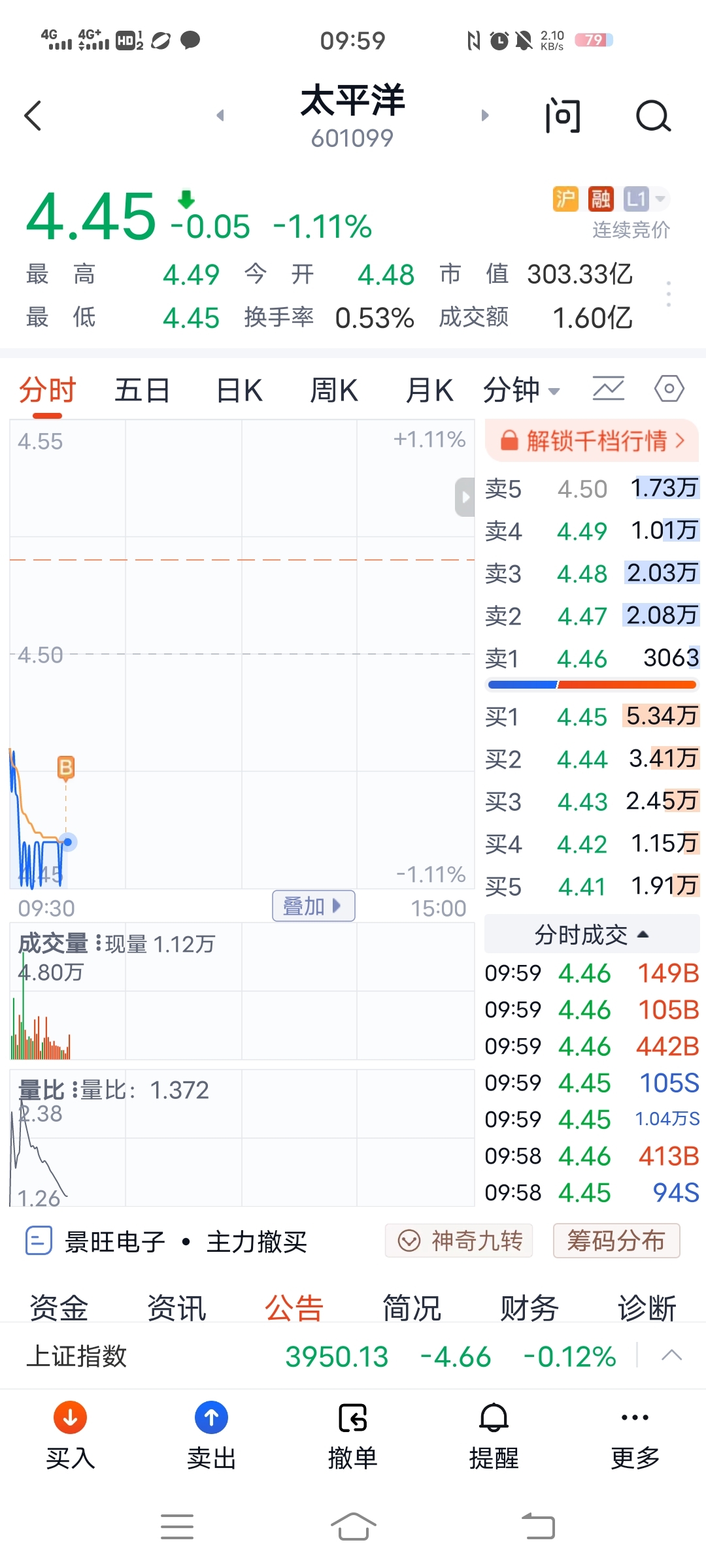 $太平洋(SH601099)$ 2025.11.03周一,持股太平洋第二天!