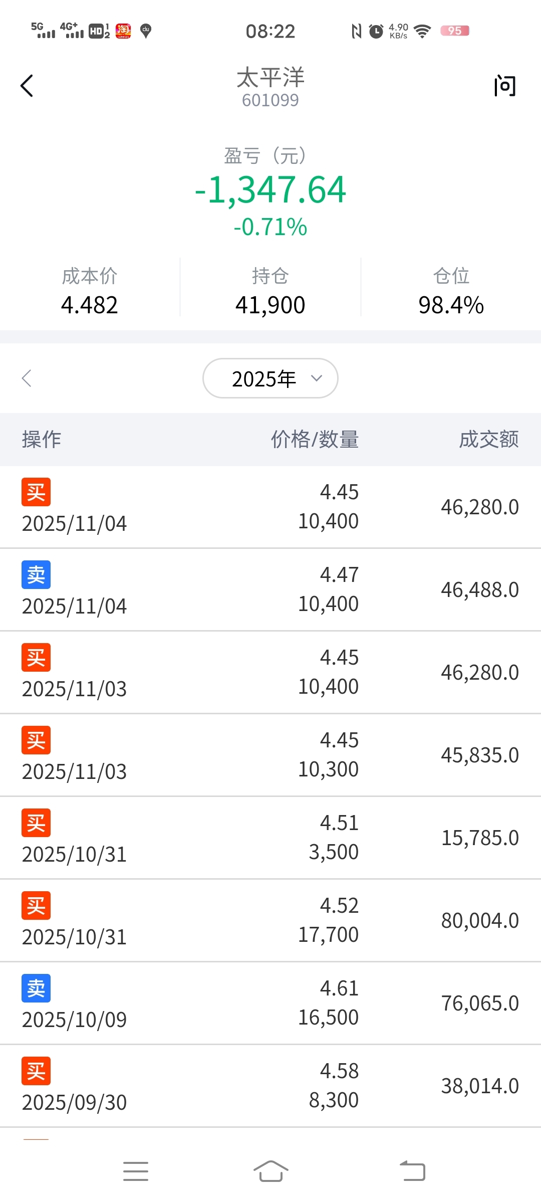 $太平洋(SH601099)$ 2025.11.05周三,持股太平洋第四天!