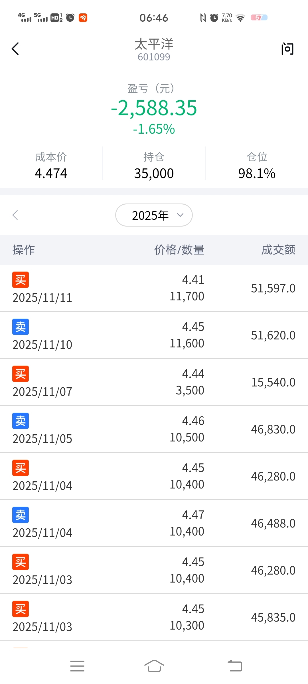 $太平洋(SH601099)$ 2025.11.12周三,持股太平洋第九天!