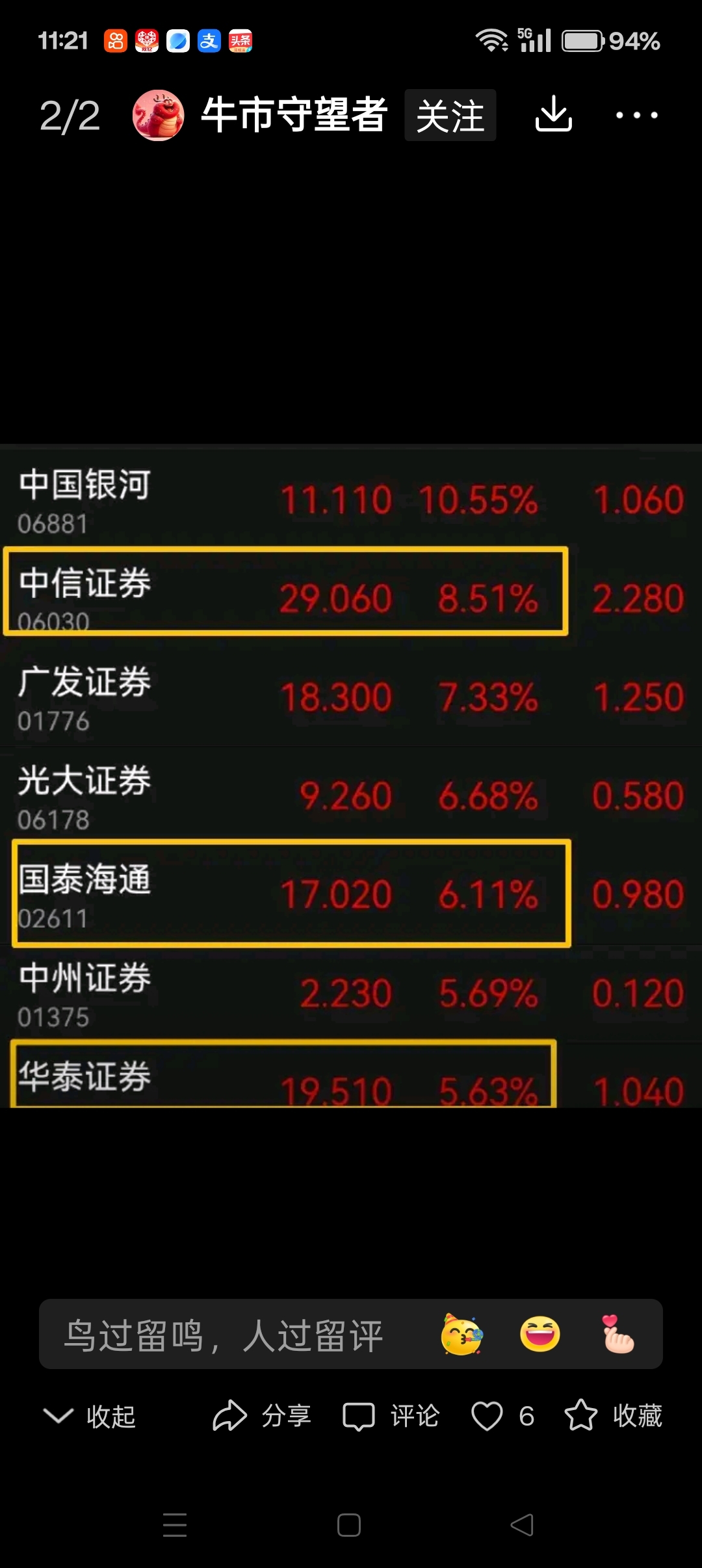 $太平洋(SH601099)$ 周五香港H券商股拉升大涨