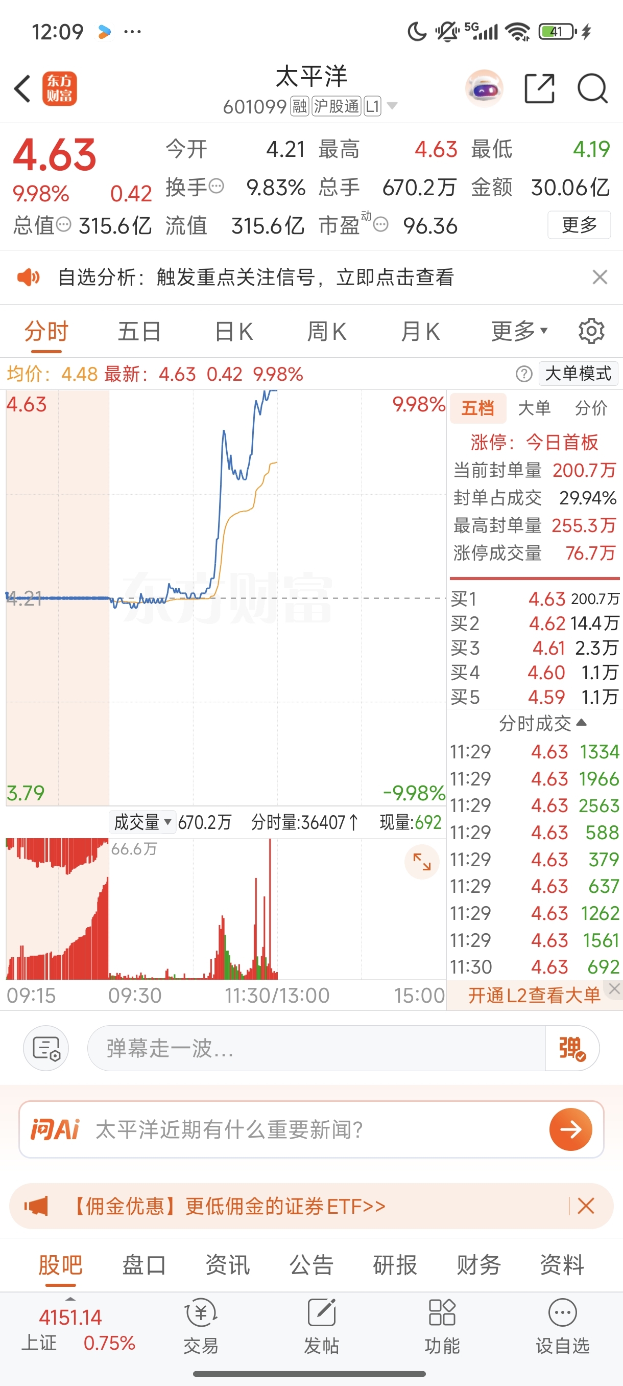 ai应用,商业航空,很多人已经不敢进了,在这个大逻辑下投资价值洼地之一就是券商!擒贼先擒王,先涨停的领头羊可以大胆梭哈,200万手封单,坐等明天高开5%!