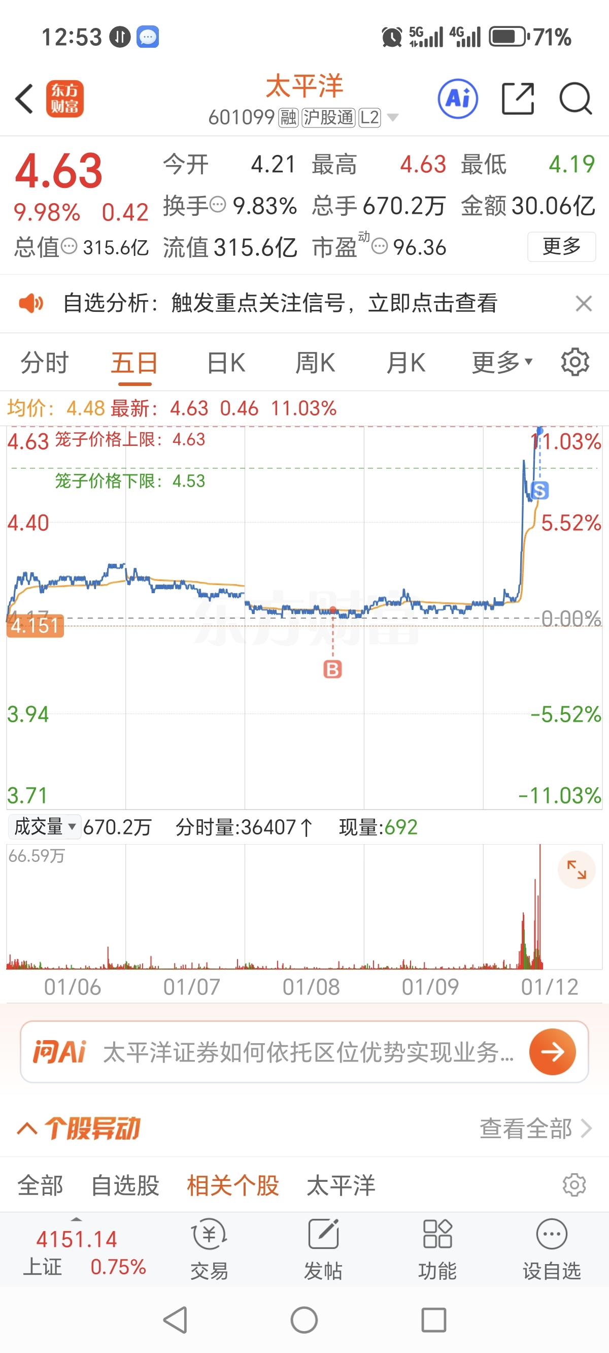 $太平洋(SH601099)$ 看不懂 ,拼运气赚的,不管对与错反正是赚了。