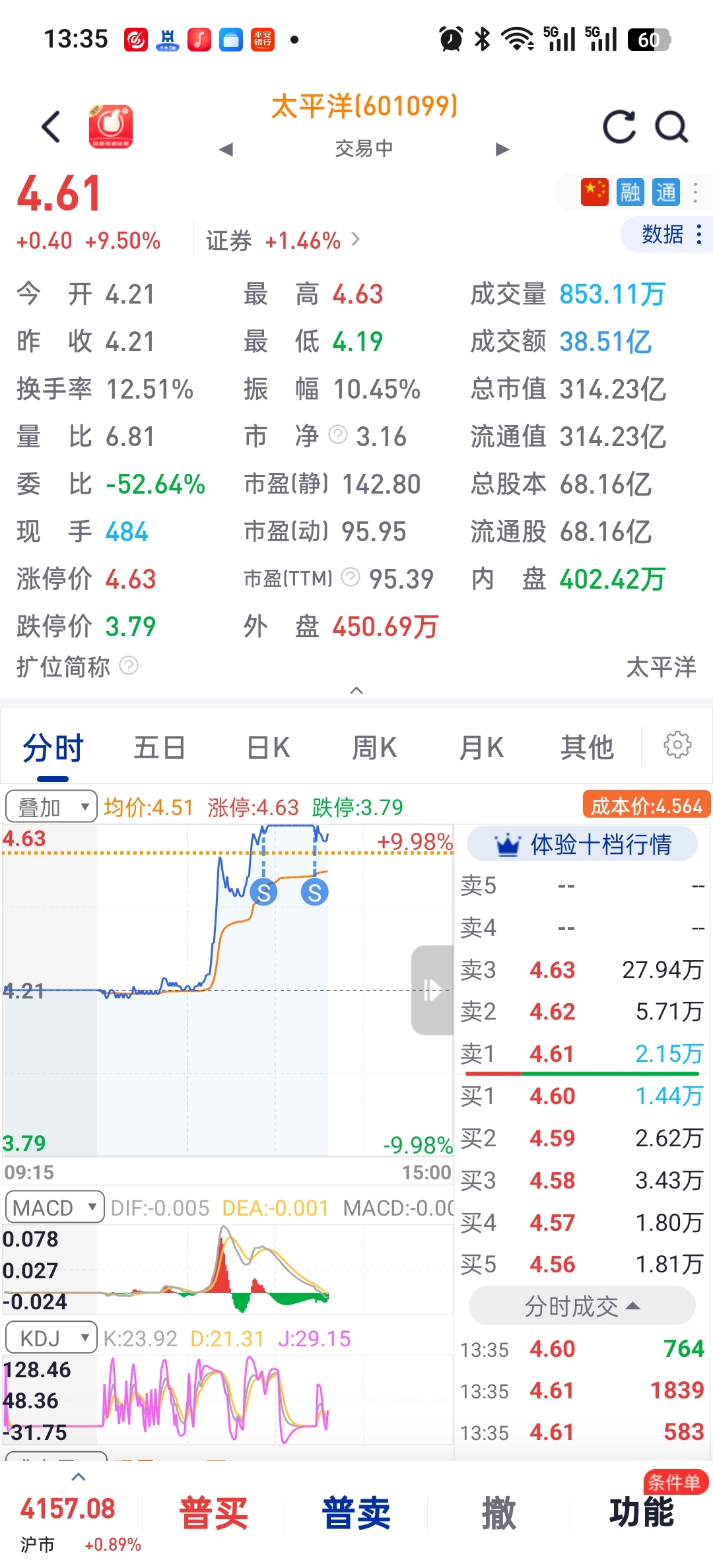 $太平洋(SH601099)$ 出了,留下的继续发财,我去天风了