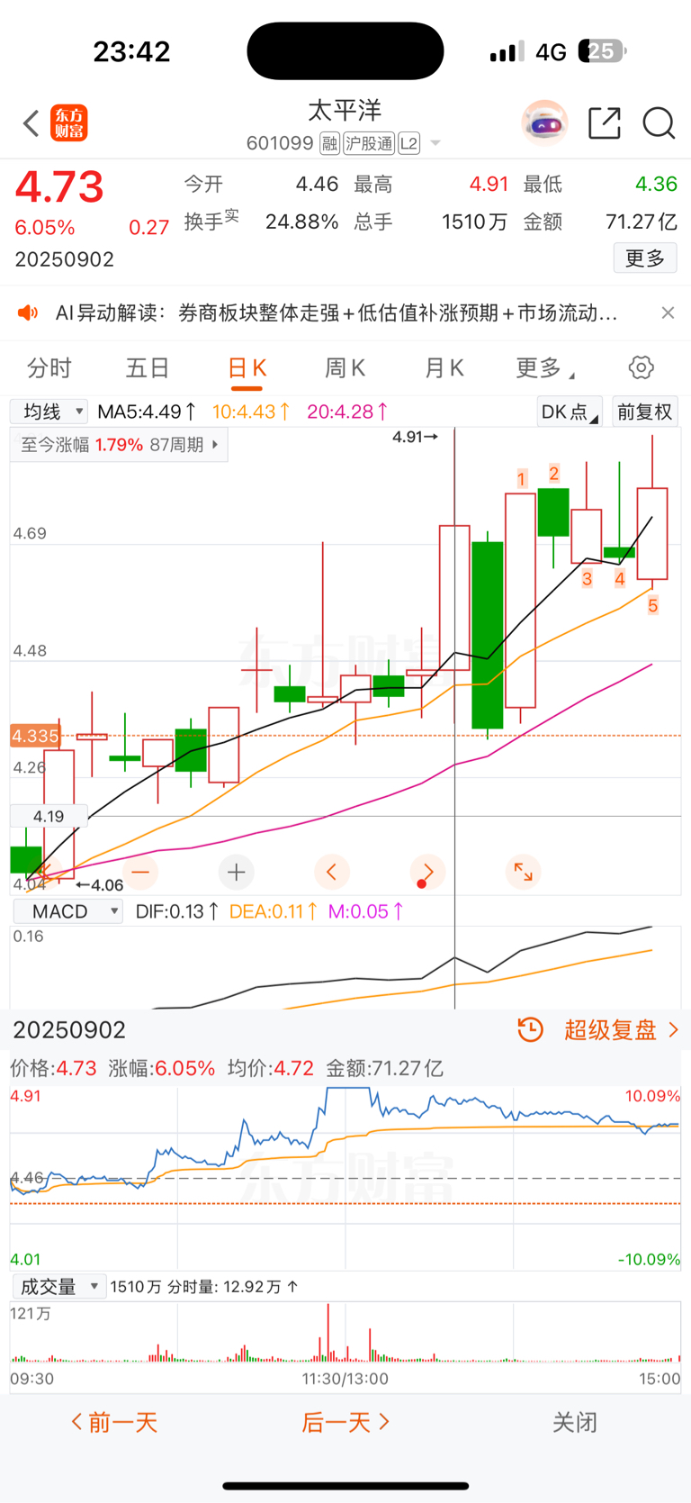 $太平洋(SH601099)$ 复了下盘,唯独不同的是当今和昨日大家持仓的成本价不同。不知道明天如何,先看竞价吧!