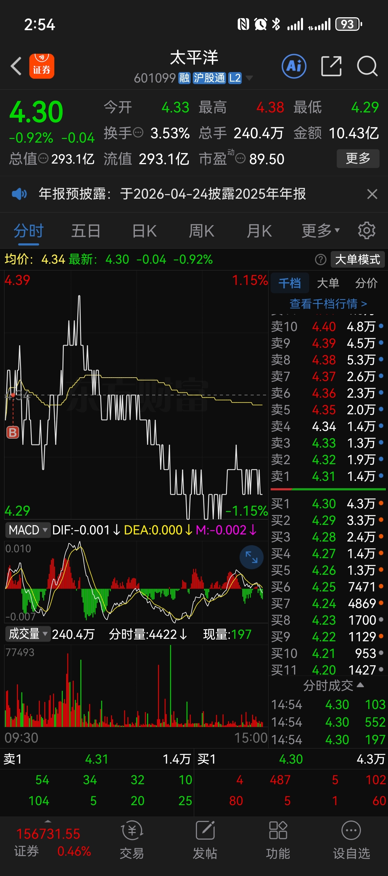 $太平洋(SH601099)$ 这只股做T真的不能期望太高,一天2分最多。早上挂高一分都卖不出去