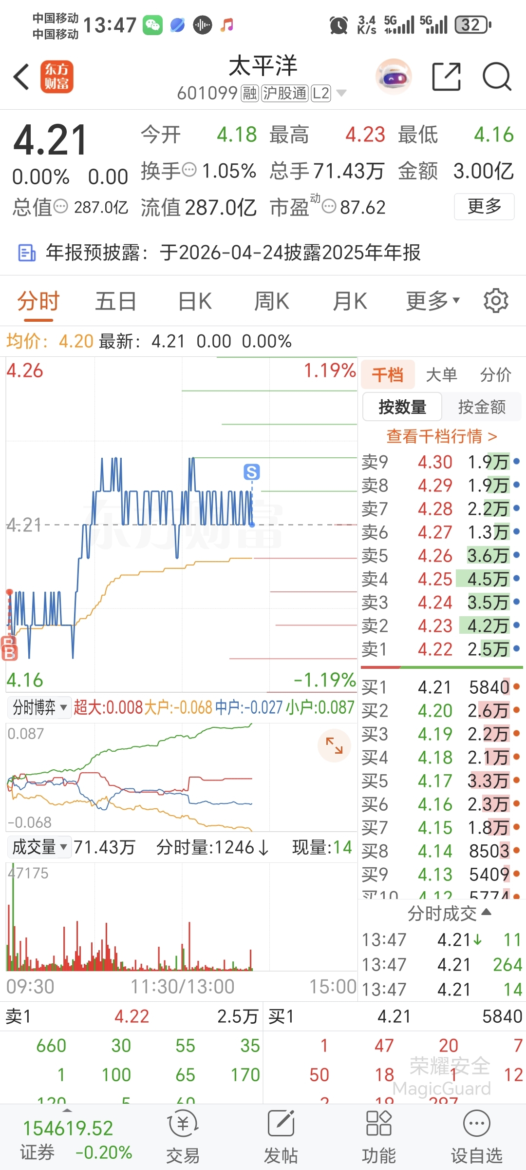 $太平洋(SH601099)$ 走了,等了一天了,不等了,干活去了