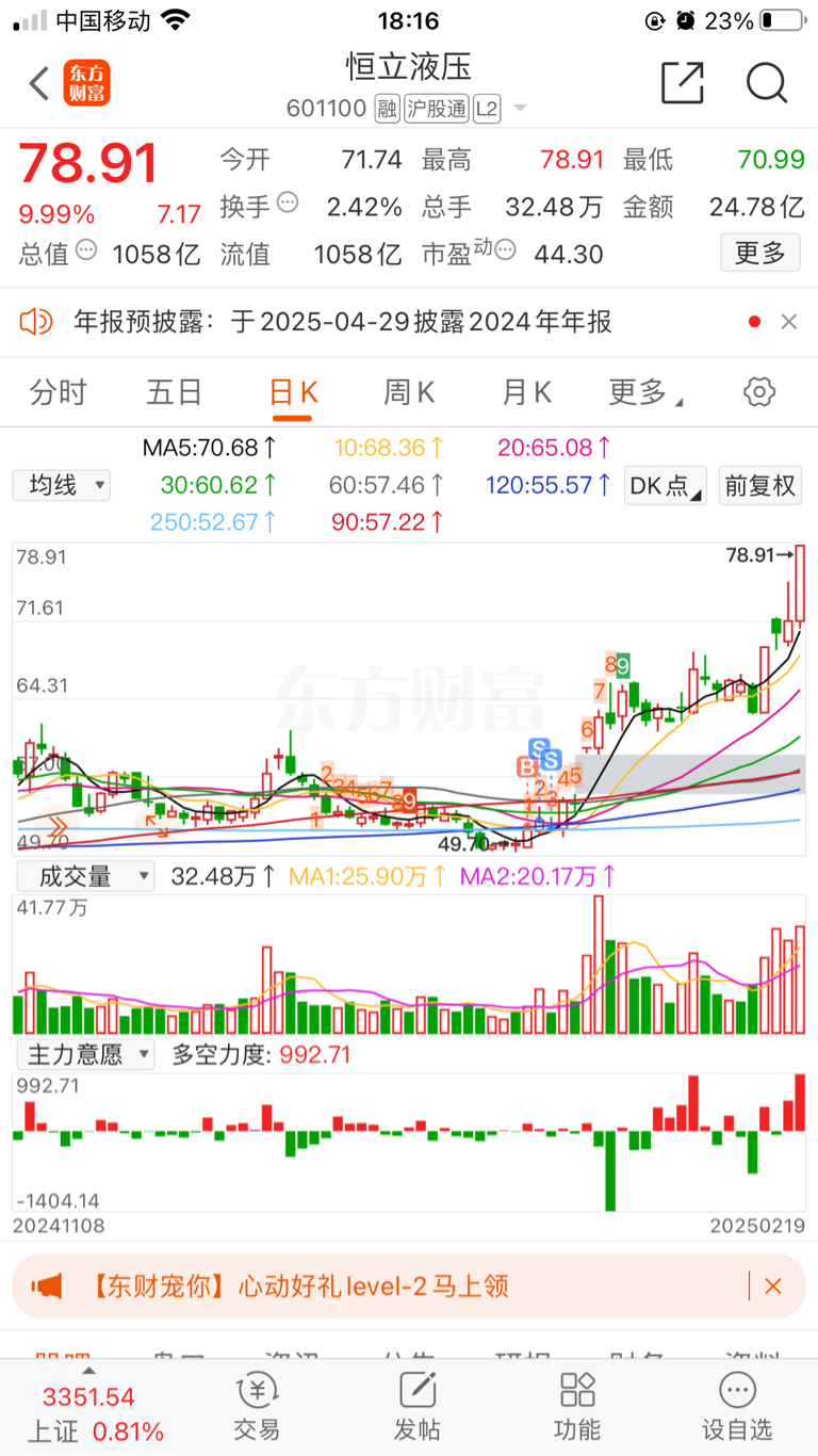 $恒立液压(SH601100)$ 已经记不清这是第几次在启动前卖飞了,看来踏空比套牢更让人感到懊悔