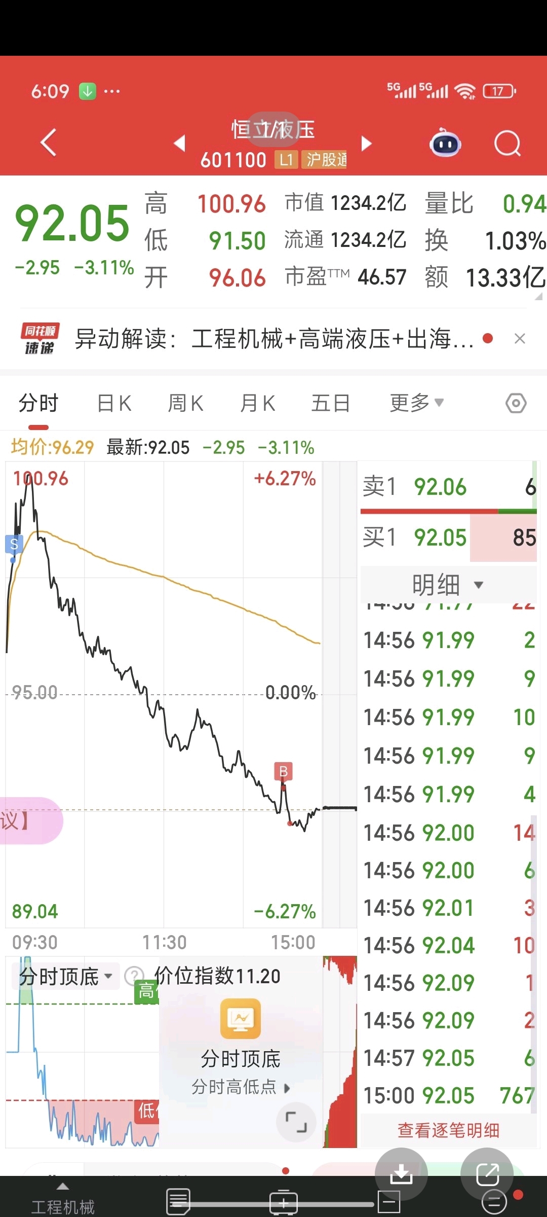 $恒立液压(SH601100)$ 不知道我顶不顶的住