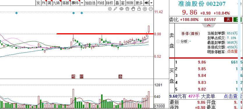 今天入手了,可以说这票是切中板块了,今天行情不稳,但是油气跟页岩气板块却一路领涨,逻辑在上面已经分析过,准油股份也凭借着自身的优势大涨,尾盘封板,首先完成了突破横盘震荡的任务。这家公司聚焦石油技术服务、建筑安装等业务,核心是为油气开采企业提供动态监测、井下作业等服务,它是新疆唯一能提供多项动态监测作业,还能结合监测资料给出稳产增产方案的专业化公司,区域独占优势突出,其动态监测、连续油管等业务在疆内市场占有率第一,服务中石油、中石化在疆油气田。在“深地经济”刚刚出炉的当下,准油股份的市值才二十来亿,比较容易受到柚子的关注,在七月份到10月份这段横盘时间里,消化了很多跟风盘,股东人数大幅减少就充分说明了盘子是真洗得干净,所以拉升起来并不需要费多大的劲。目前已经成功突围,可以格局形成上升趋势。