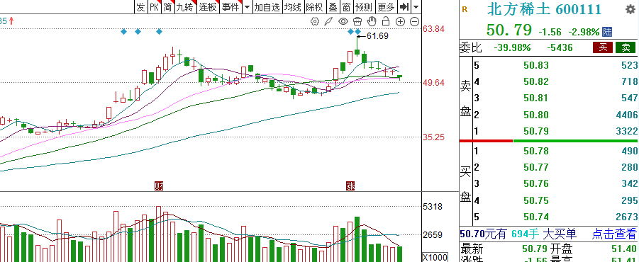 尽管看好的逻辑清晰,无奈稀土永磁板块今天退潮太明显了,北方稀土暂时无法走出预期行情。月初成功拿过一次板,现在又A回去了,经过一番蓄势之后,再出现一波反抽行情也是值得期待的。在中美贸易摩擦背景下,美国 80% 的稀土需求依赖中国进口。作为全球最大轻稀土供应商,北方稀土地位关键。它依托自有资源,冶炼分离成本比海外低超30%,还握有全球领先的冶炼分离技术,能高效产出纯度达99.999%的稀土产品。即便中美关税博弈引发市场波动,比如 2025年上半年镨钕金属均价同比涨11.9%,其抗风险能力仍突出,2025 年前三季度归母净利润同比增幅达272.54%-287.34%,持续保持高盈利。近期的最大特色就是出现密集的小阳小阴,尽管整体处于下行通道,但这种K线一般是在酝酿行情的体现,只是还差一个拐点而已,先密切关注。