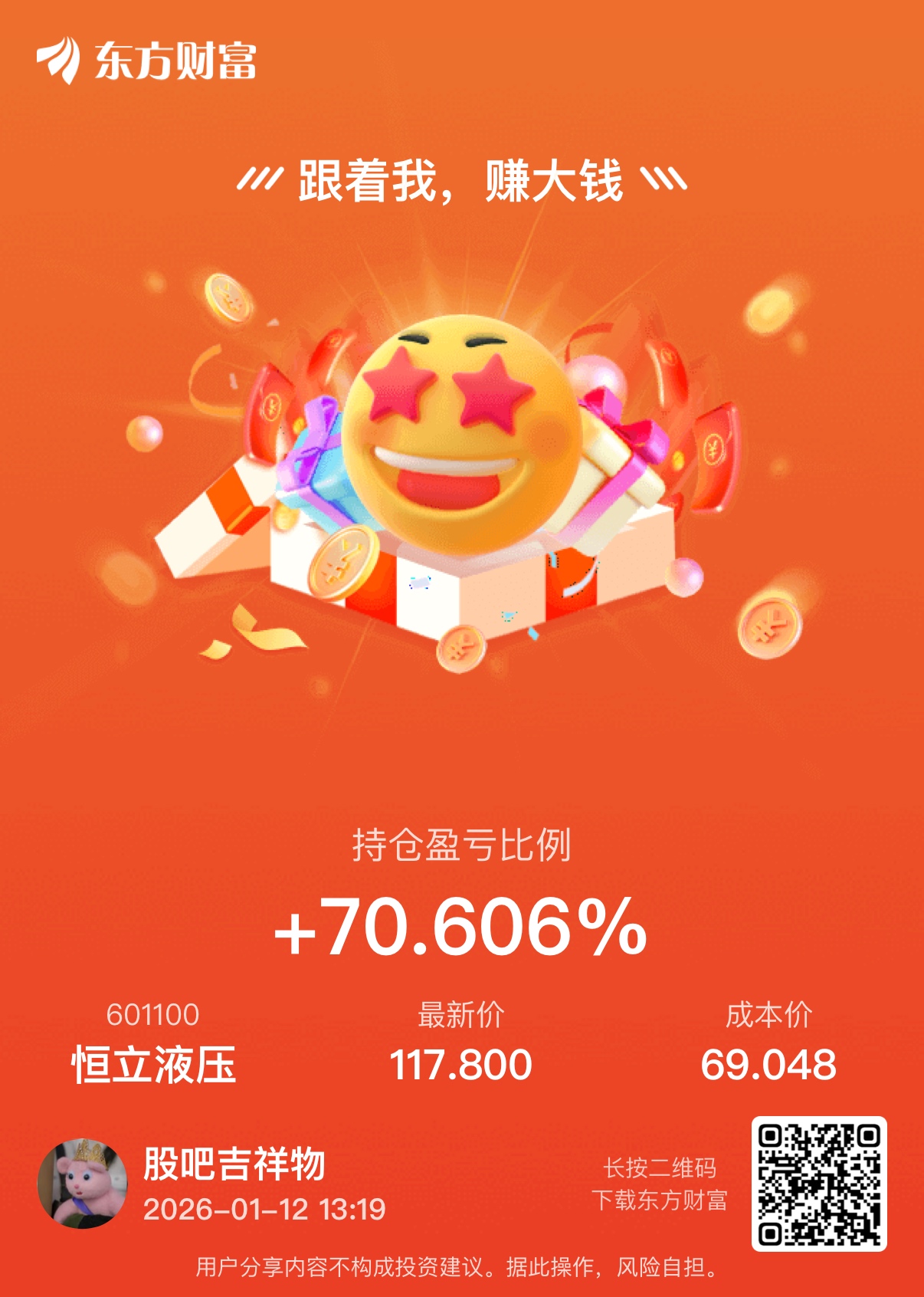$恒立液压(SH601100)$ 2021年持有鸭到现在已经完全掌握了鸭的个性,散户不要来找鸭否则会给鸭揍。爱鸭到永远