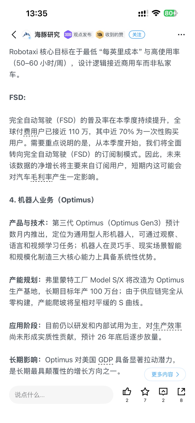 按照TSL电话会议,Q1发布O3,Q2-Q3建设(改造)厂房,Q3到Q4量产,产能100W/年初步,目前还没有发布还在修改,按照马斯克的说法,3.0比2.5版本提升很多,主要是灵活性提升很多,那么机械部分(零件)需要修改的地方应该不多了,大多数可以准备量产下单预生产,功能算法或者部分优化还在进行,主要是围绕着AI算法部分,应该是快了。