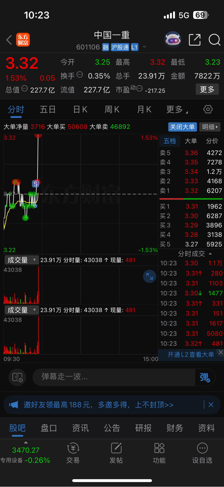 $中国一重(SH601106)$ 考 刚清仓就拉。