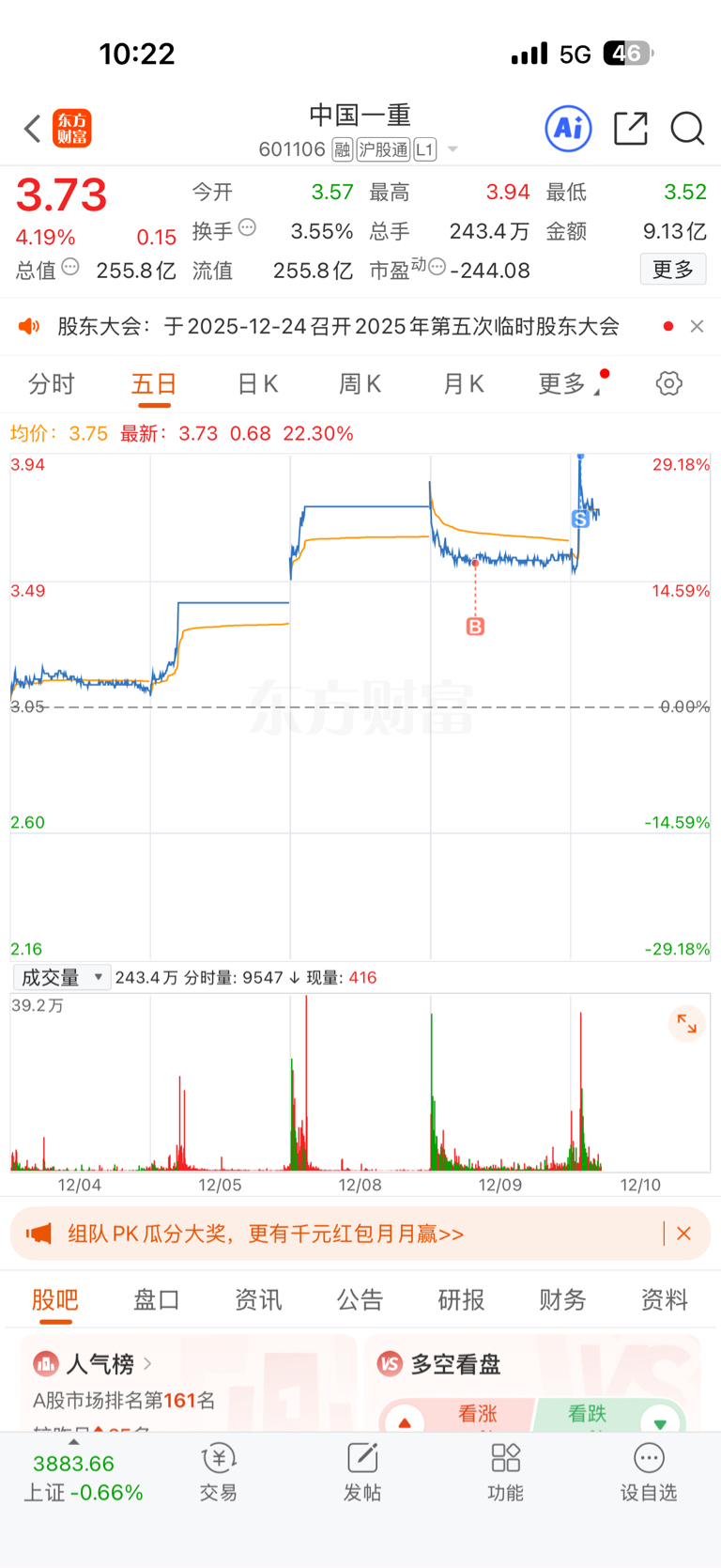 $中国一重(SH601106)$ 骚操作一下,涨停板卖的