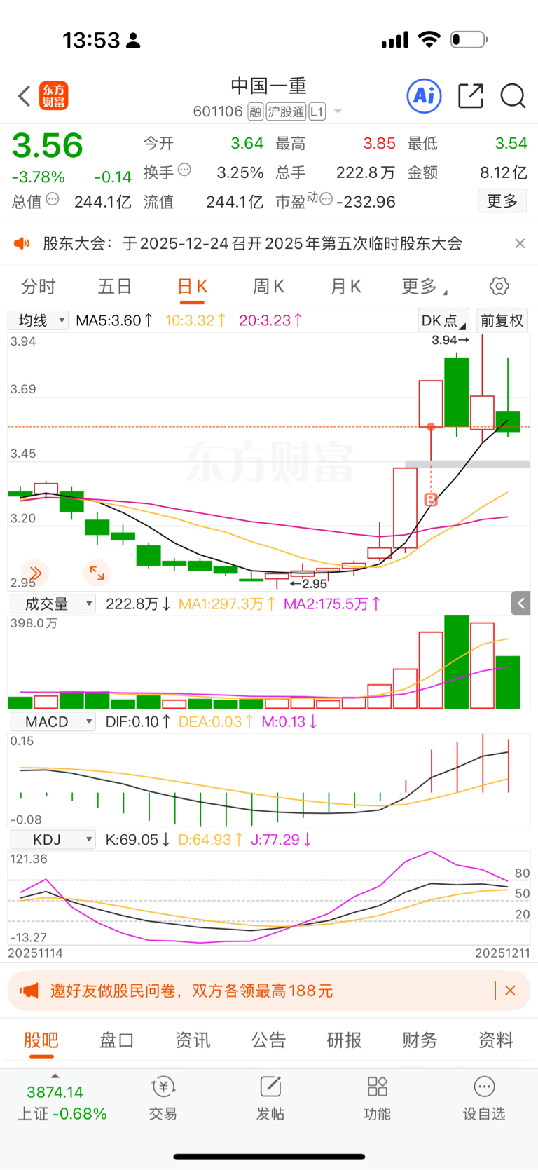 $中国一重(SH601106)$ 我服了我自己