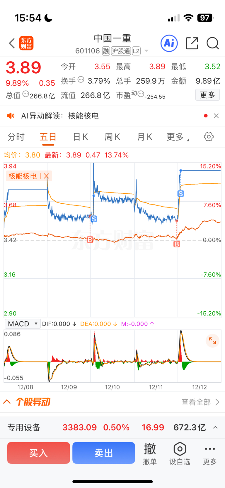 $中国一重(SH601106)$ 周三让条件单坑了3.72就卖了 今天直接挂涨停出了 留下的发财