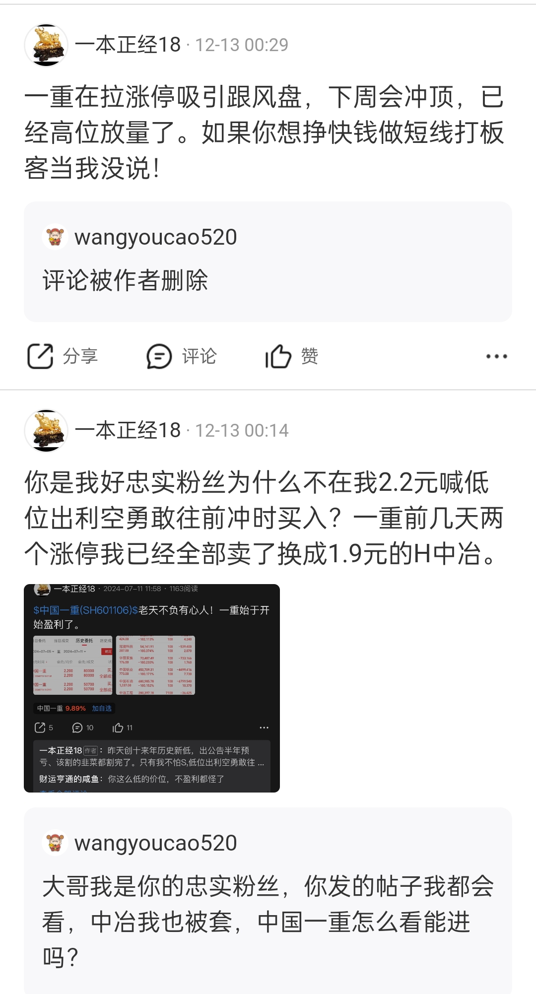 $中国一重(SH601106)$ 希望周末看到涨停问我能不能买的朋友周一没有追进去!