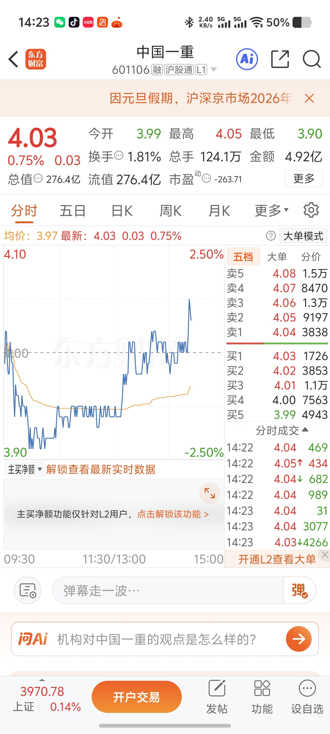 $中国一重(SH601106)$ 主力忍不住了么