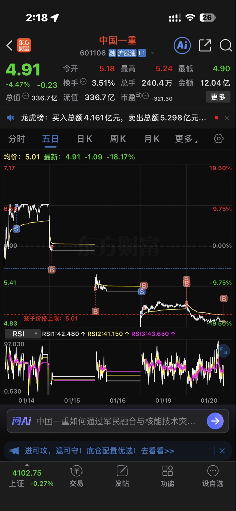 $中国一重(SH601106)$ 我是刚满18的大学生,再不拉起来我就跳了