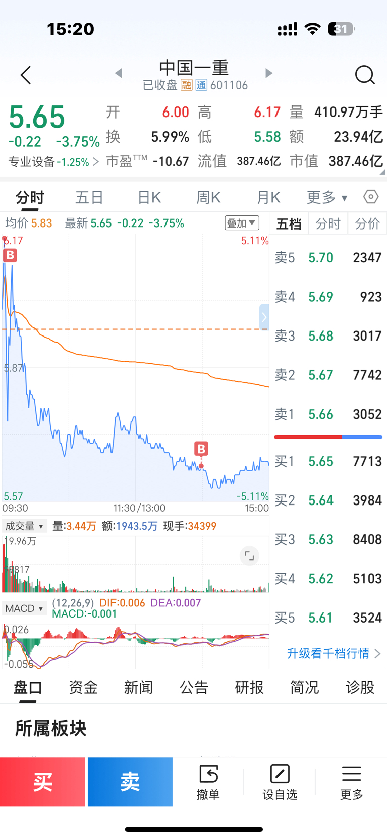 $中国一重(SH601106)$ 看上我这三瓜两枣了?!?!我一买进去就暴跌?嘈了