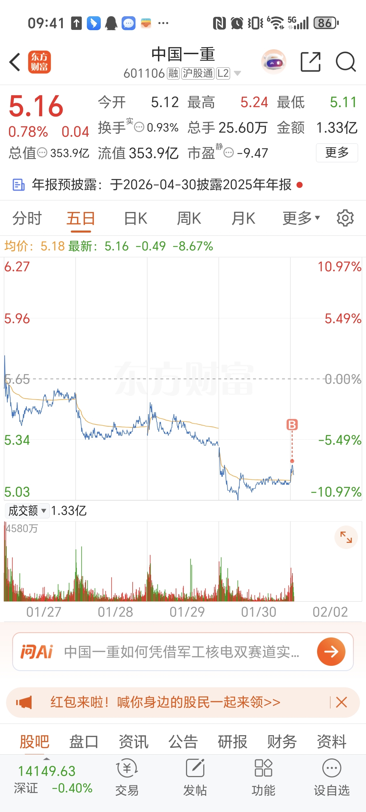 $中国一重(SH601106)$ 忍了这么久终于还是上套了