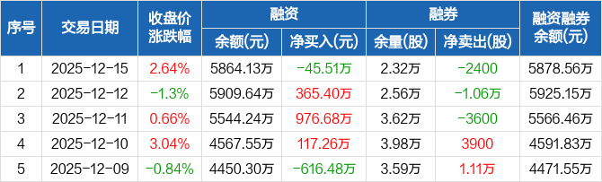 四川成渝:融资净偿还45.51万元,融资余额5864.13万元(12-15)