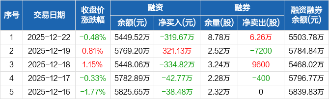 四川成渝:融资净偿还319.67万元,融资余额5449.52万元(12-22)