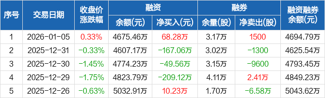 四川成渝:融资净买入68.28万元,融资余额4675.46万元(01-05)