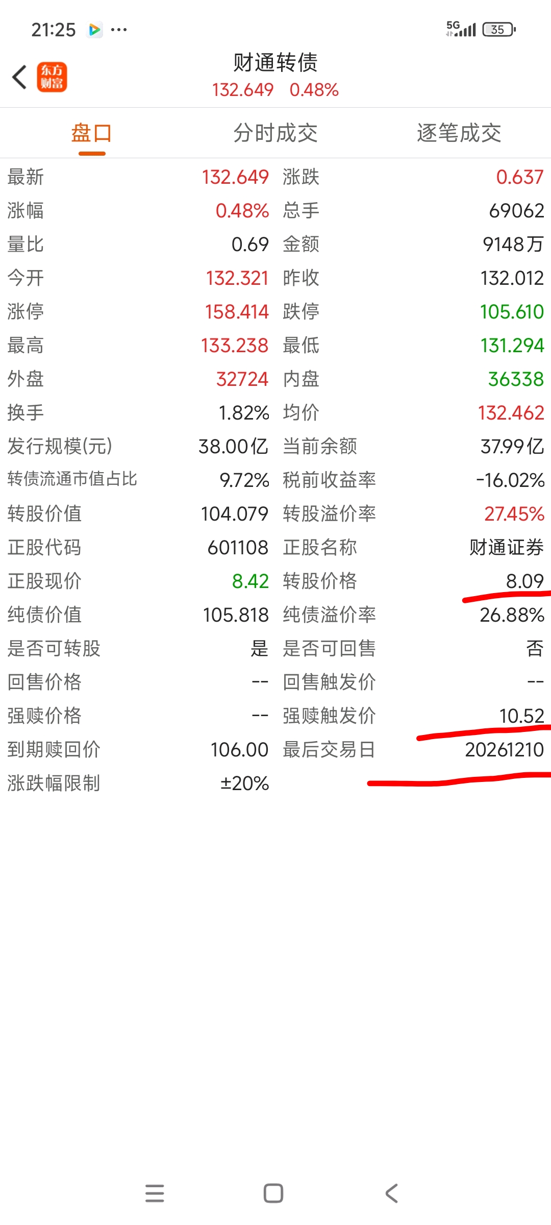 $财通证券(SH601108)$ 财通证券董事长章启诚任职期财通证券跑输大市百分之百!跑输证券股票百分之百!分析给你们看看!财通证券资管拿着2200亿元炒股,大市上涨一千多点财通证券2025年第一季度业绩下跌百分之三十???这伙资管受到指示的,就是令到财通证券股价30天内有15天股价底于转股价百分之八十!11.18元向下修正为8.20元(11.18-8.2)=2.98元下修2.98元,就是为了38亿元债券不用返款转为股票!任务完成了!你再分析财通证券还有机会上涨到11.38元发行价!我同你们说无门!在2026年12月10之前都没有可能的!大市上涨到5200点财通证券在这段时间都不可能到10.52元!因为转债强赎回价钱是:10.52元!财通证券董事长章启诚做这么多心思!就为了化债!道德绑架我们散户!所以财通证券化债没有完全之前都好难上涨到10.52元的!财通证券跑输证券股票百分之百!正常价钱应该有18.00元左右的!