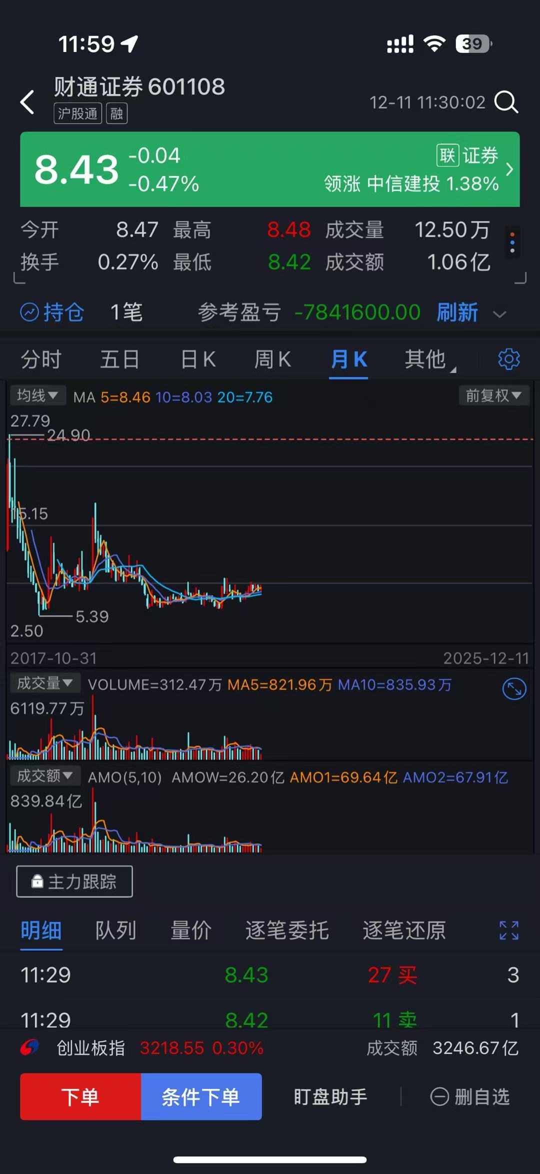 $财通证券(SH601108)$ 牛市都拯救不了你……