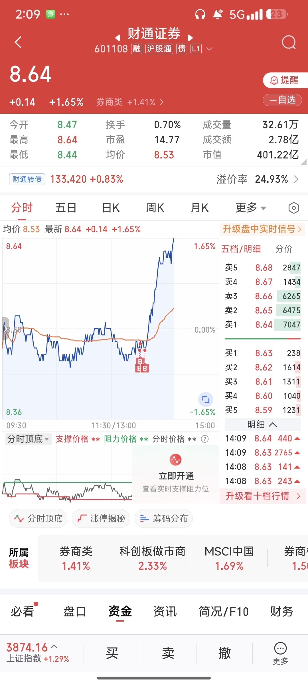 $财通证券(SH601108)$ 渣男,只要跌我就买