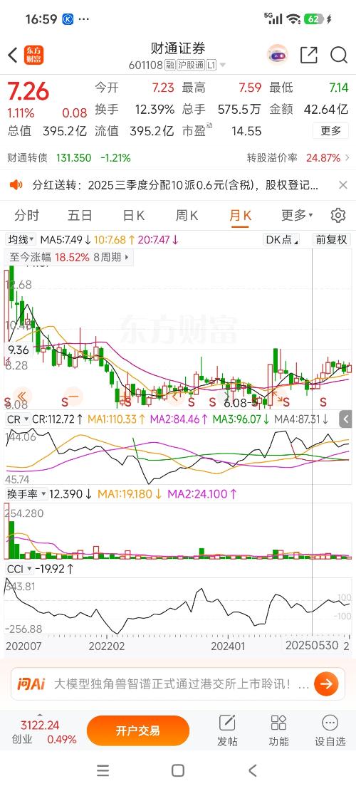 $财通证券(SH601108)$ 财通证券董事长章启诚任职期财通证券跑输大市百分之百!跑输证券股票百分之百!分析给你们看看!财通证券资管拿着2200亿元炒股,大市上涨一千多点财通证券2025年第一季度业绩下跌百分之三十???这伙资管受到指示的,就是令到财通证券股价30天内有15天股价底于转股价百分之八十!11.18元向下修正为8.20元(11.18-8.2)=2.98元下修2.98元,就是为了38亿元债券不用返款转为股票!任务完成了!你再分析财通证券还有机会上涨到11.38元发行价!我同你们说无门!在2026年12月10之前都没有可能的!大市上涨到5200点财通证券在这段时间都不可能到10.52元!因为转债强赎回价钱是:10.52元!财通证券董事长章启诚做这么多心思!就为了化债!道德绑架我们散户!所以财通证券化债没有完全之前都好难上涨到10.52元的!财通证券跑输证券股票百分之百!正常价钱应该有18.00元左右的!