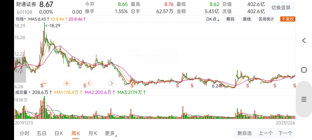 $财通证券(SH601108)$ 财通证券董事长章启诚任职期财通证券跑输大市百分之百!跑输证券股票百分之百!分析给你们看看!财通证券资管拿着2200亿元炒股,大市上涨一千多点财通证券2025年第一季度业绩下跌百分之三十???这伙资管受到指示的,就是令到财通证券股价30天内有15天股价底于转股价百分之八十!11.18元向下修正为8.20元(11.18-8.2)=2.98元下修2.98元,就是为了38亿元债券不用返款转为股票!任务完成了!你再分析财通证券还有机会上涨到11.38元发行价!我同你们说无门!在2026年12月10之前都没有可能的!大市上涨到5200点财通证券在这段时间都不可能到10.52元!因为转债强赎回价钱是:10.52元!财通证券董事长章启诚做这么多心思!就为了化债!道德绑架我们散户!所以财通证券化债没有完全之前都好难上涨到10.52元的!财通证券跑输证券股票百分之百!正常价钱应该有18.00元左右的!