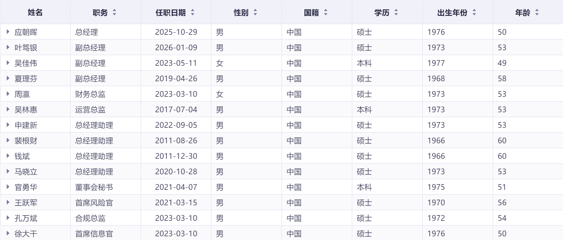 图/财通证券高管团队成员,来源:同花顺iFinD