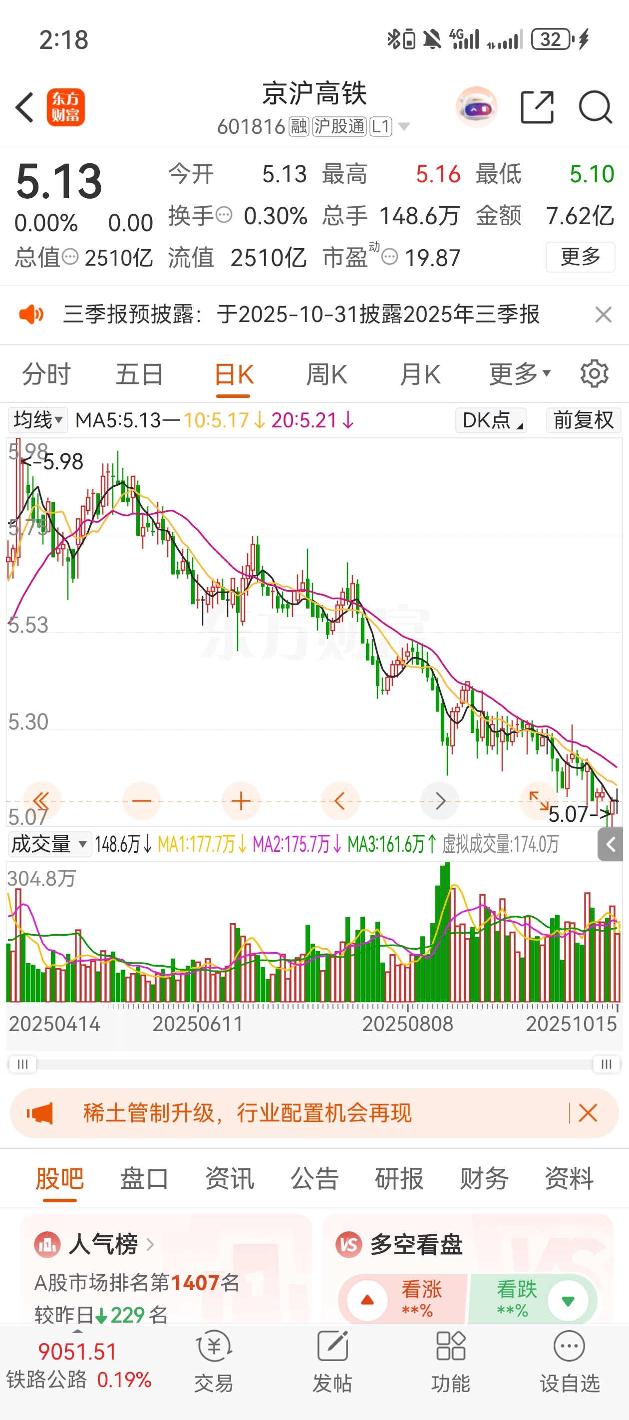 $中国国航(SH601111)$ 地上跑的真的很羡慕天上飞的啊。