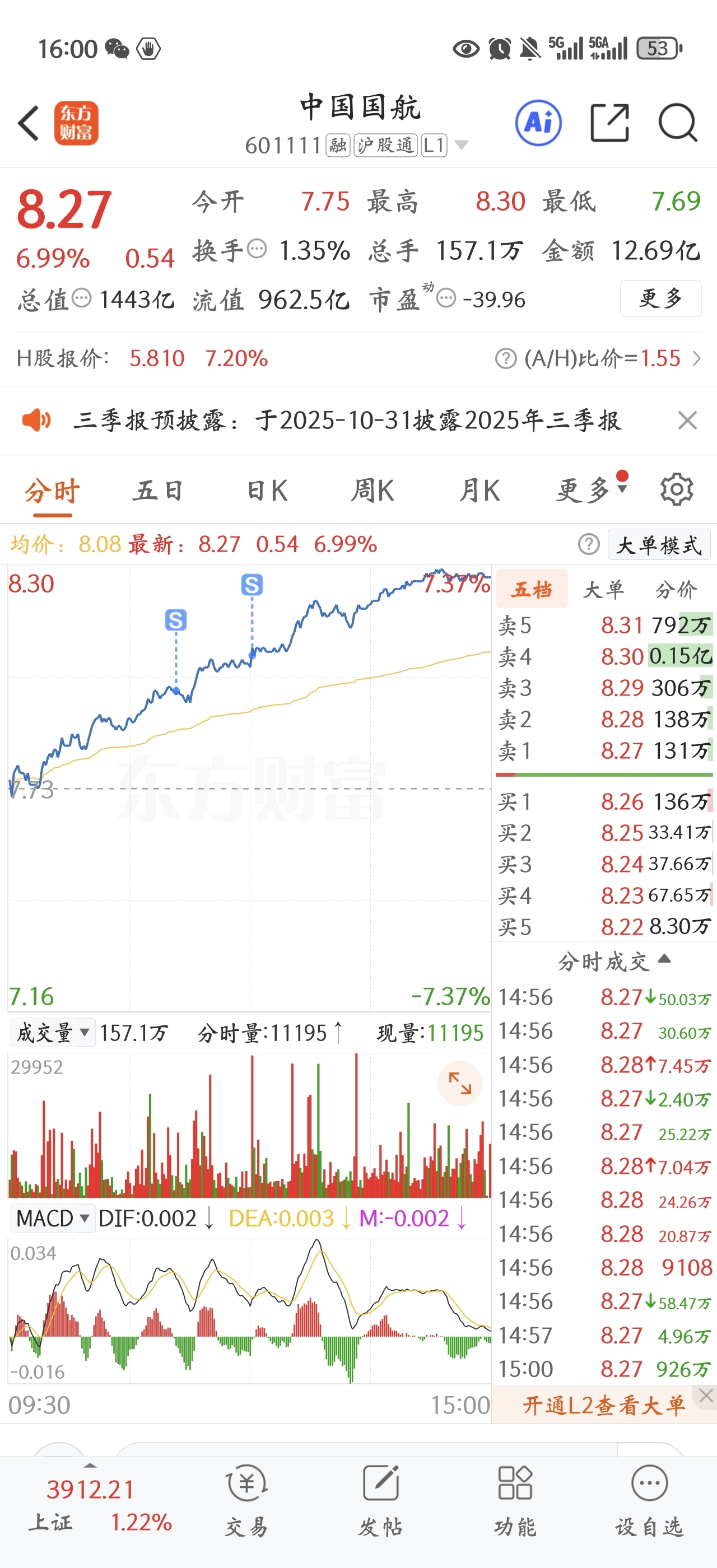 $中国国航(SH601111)$ 拿了这么久给我卖飞了