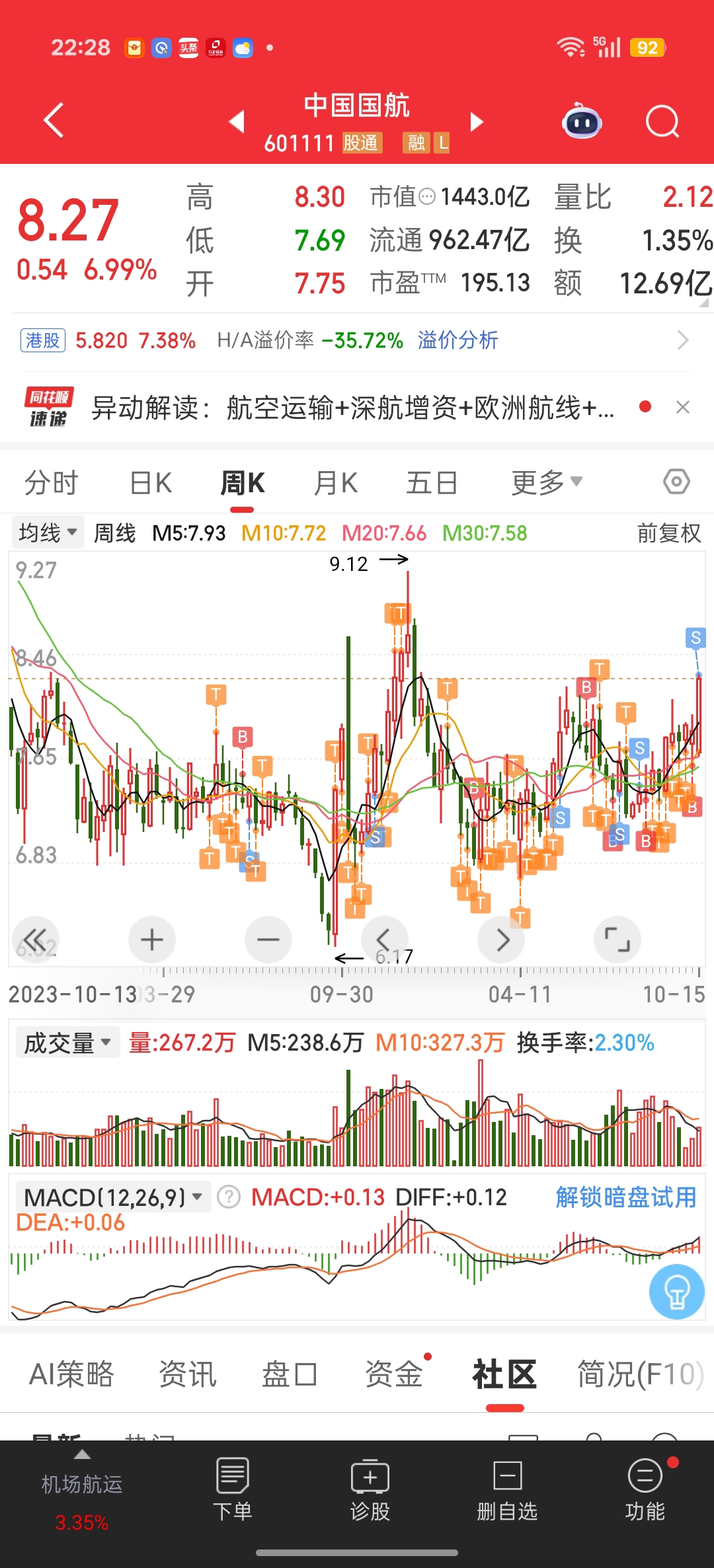 $中国国航(SH601111)$ 一年半挣几十个点,够了。。兄弟们发财