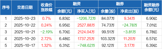 中国国航:融资净偿还1206.72万元,融资余额6.83亿元(10-23)