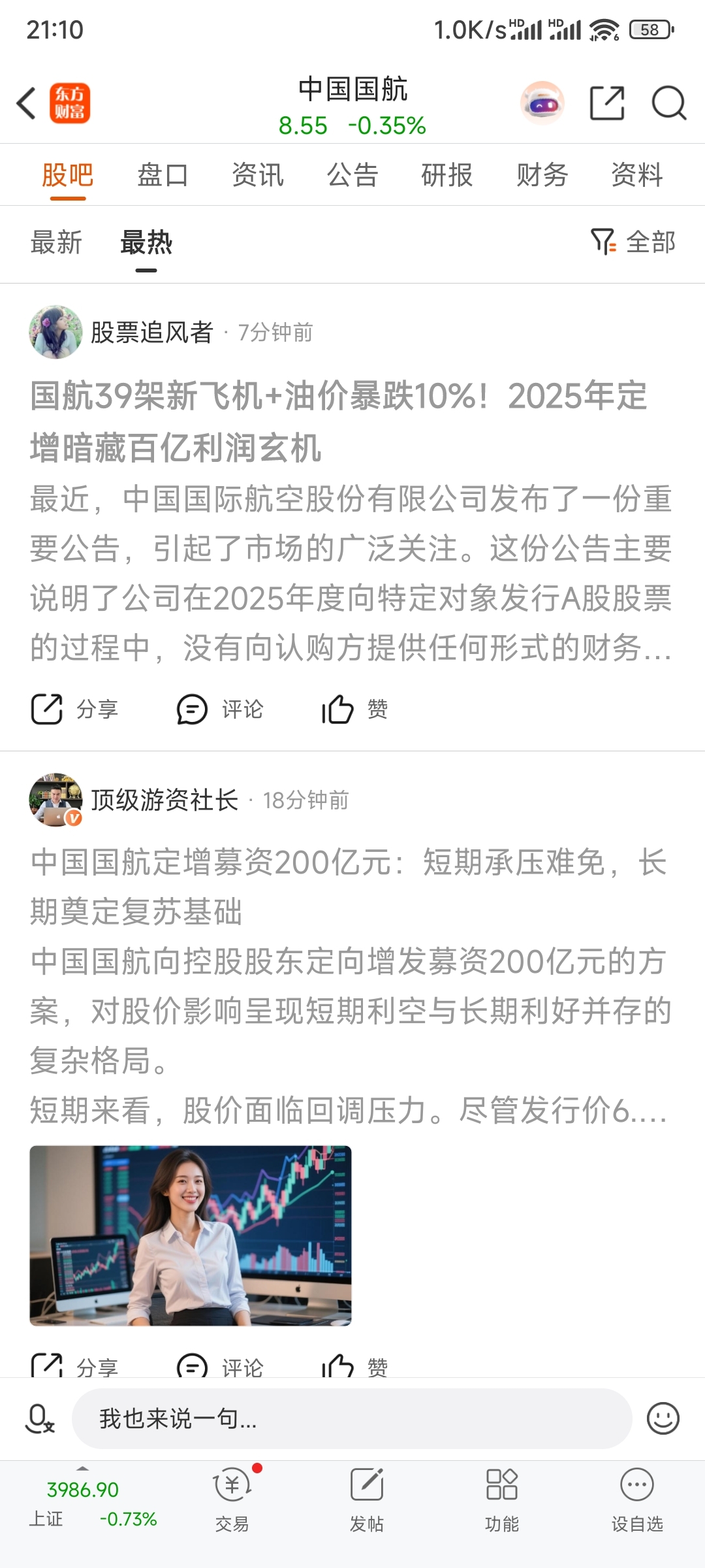 $中国国航(SH601111)$  之前好像很少有这种账号在国航发帖,这咋一下冒出来两个?