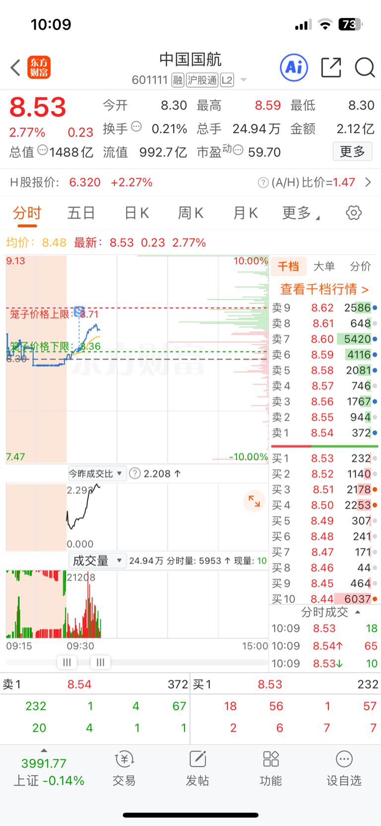 $中国国航(SH601111)$ 本来想T一下,卖飞了,不按原先套路出牌了