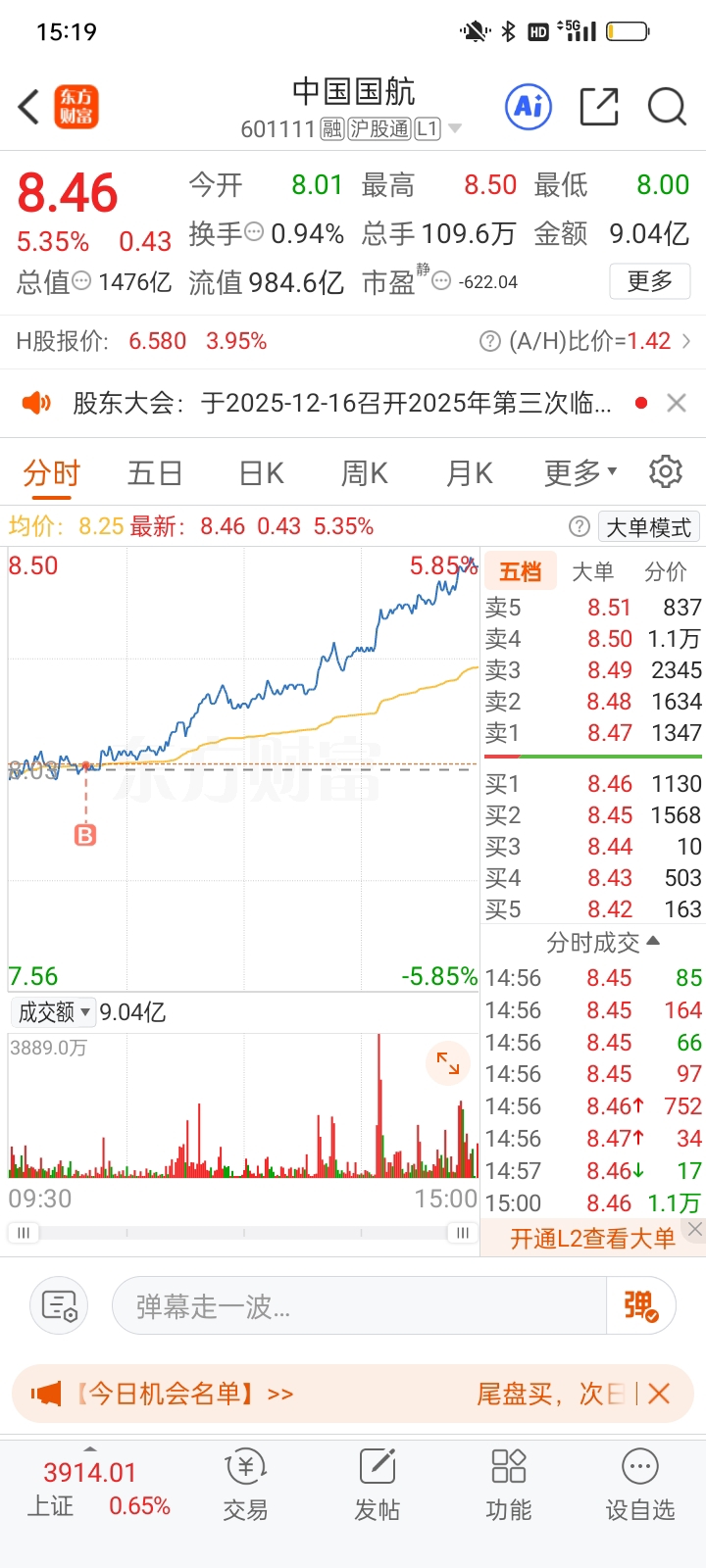 $中国国航(SH601111)$ 今天加了200手,明天卖出回本