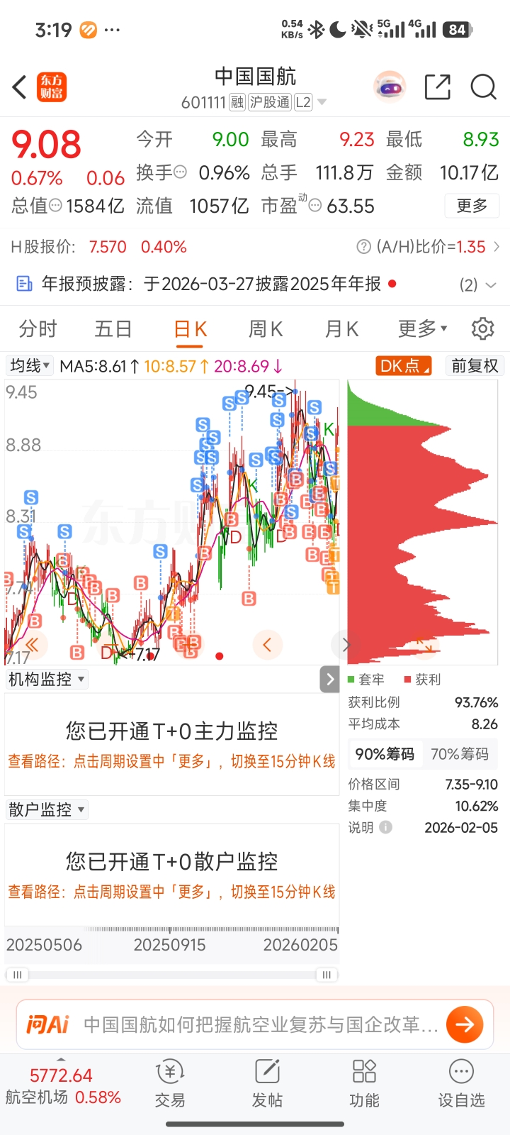 $中国国航(SH601111)$ 持股不动了,去年三大航里选股选了你,不敢想当时要是我买的东方航空会有多爽。