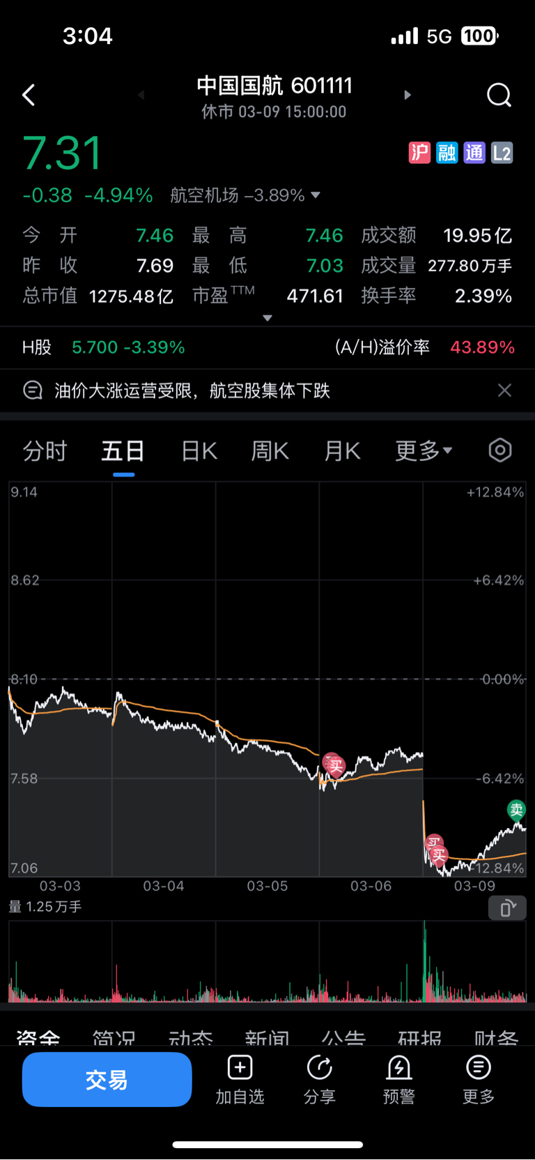 $中国国航(SH601111)$ 本来挣钱,NND,现在保本,明天低开继续抄底